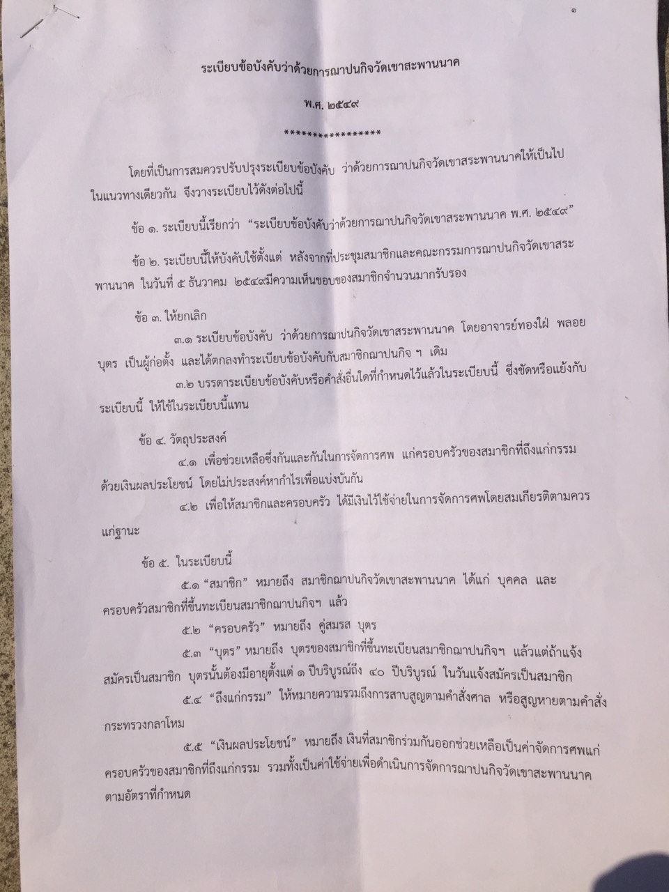 ระเบียบข้อบังคับว่าด้วยการฌาปนกิจวัดเขาสะพานนาค